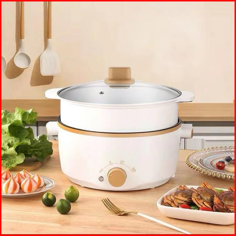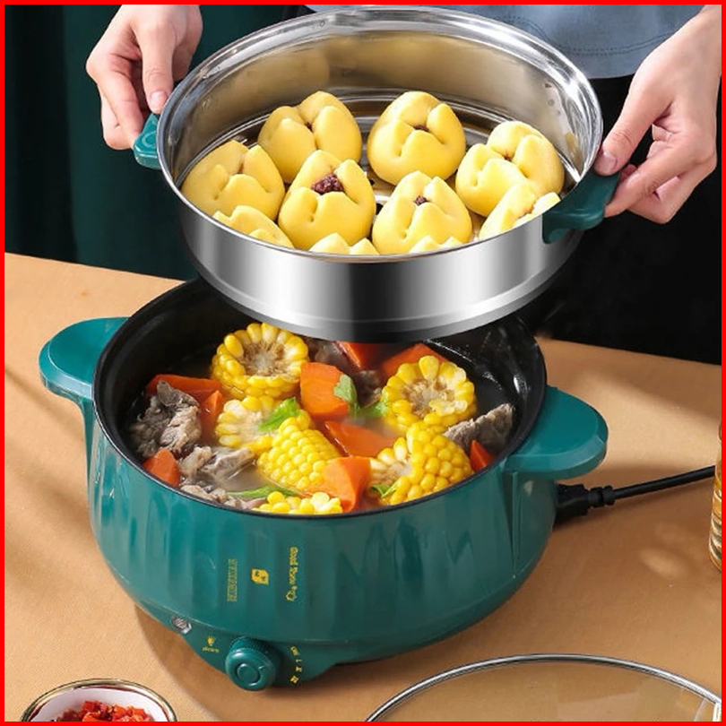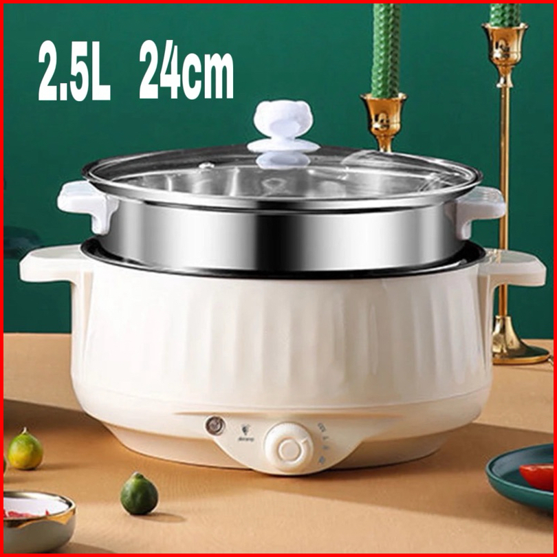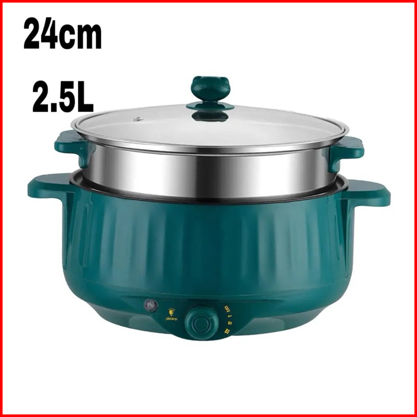 2.5l Panci Listrik Serbaguna 24cm Plus Kukusan Panci Listrik 3in1 Anti Lengket 2.5l Dengan Kukusan