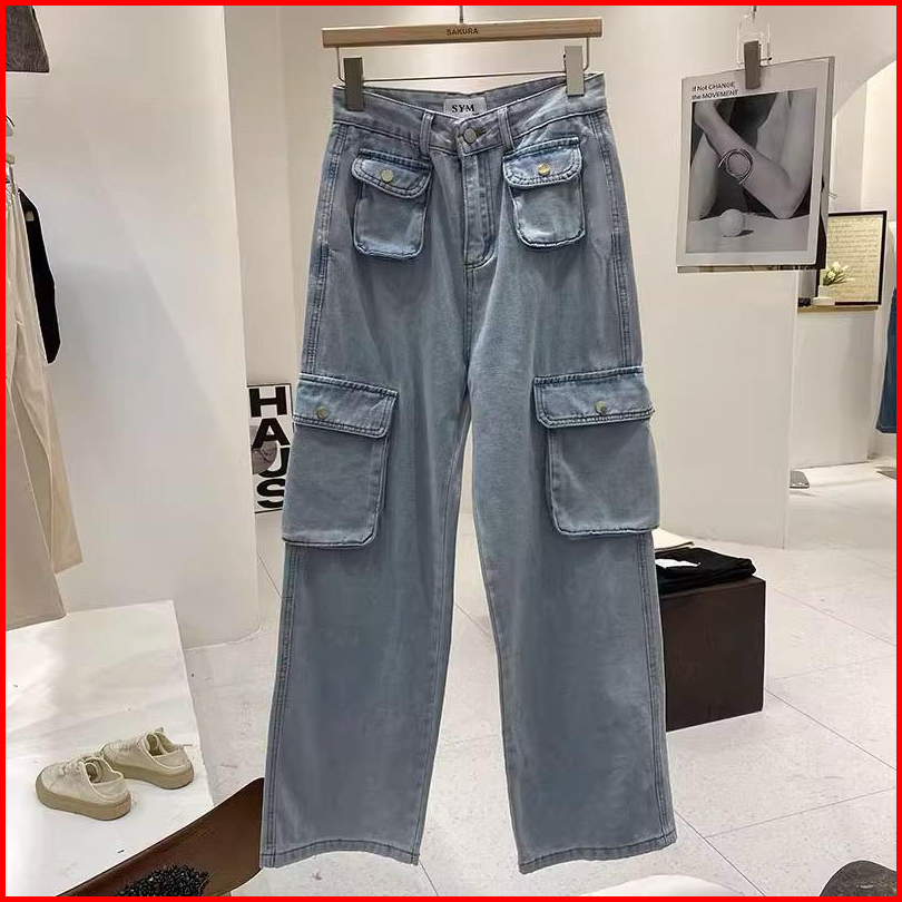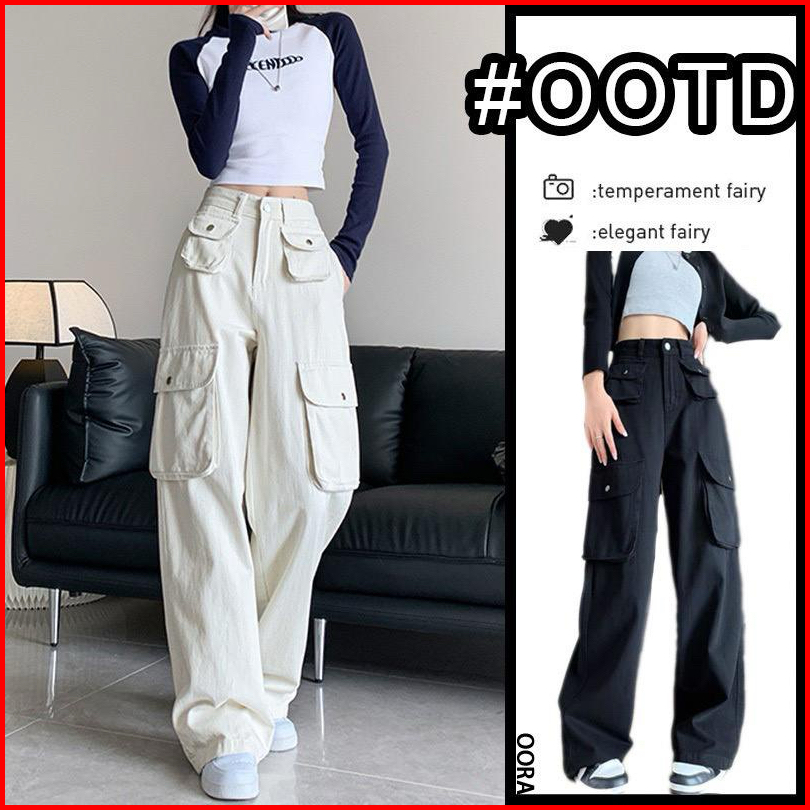 Celana Cargo Korea Style Hight Waist Celana Cargo Loose Korea Hight Wasit