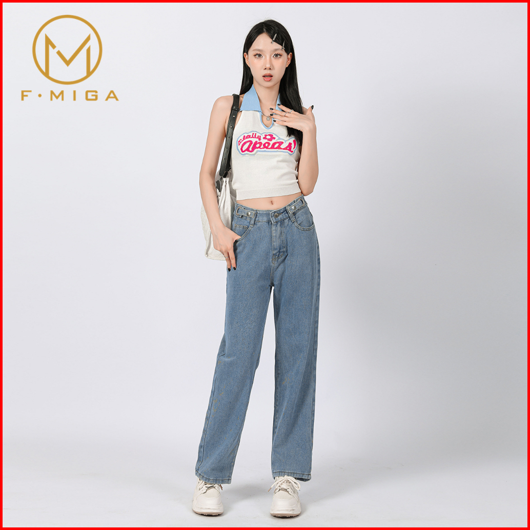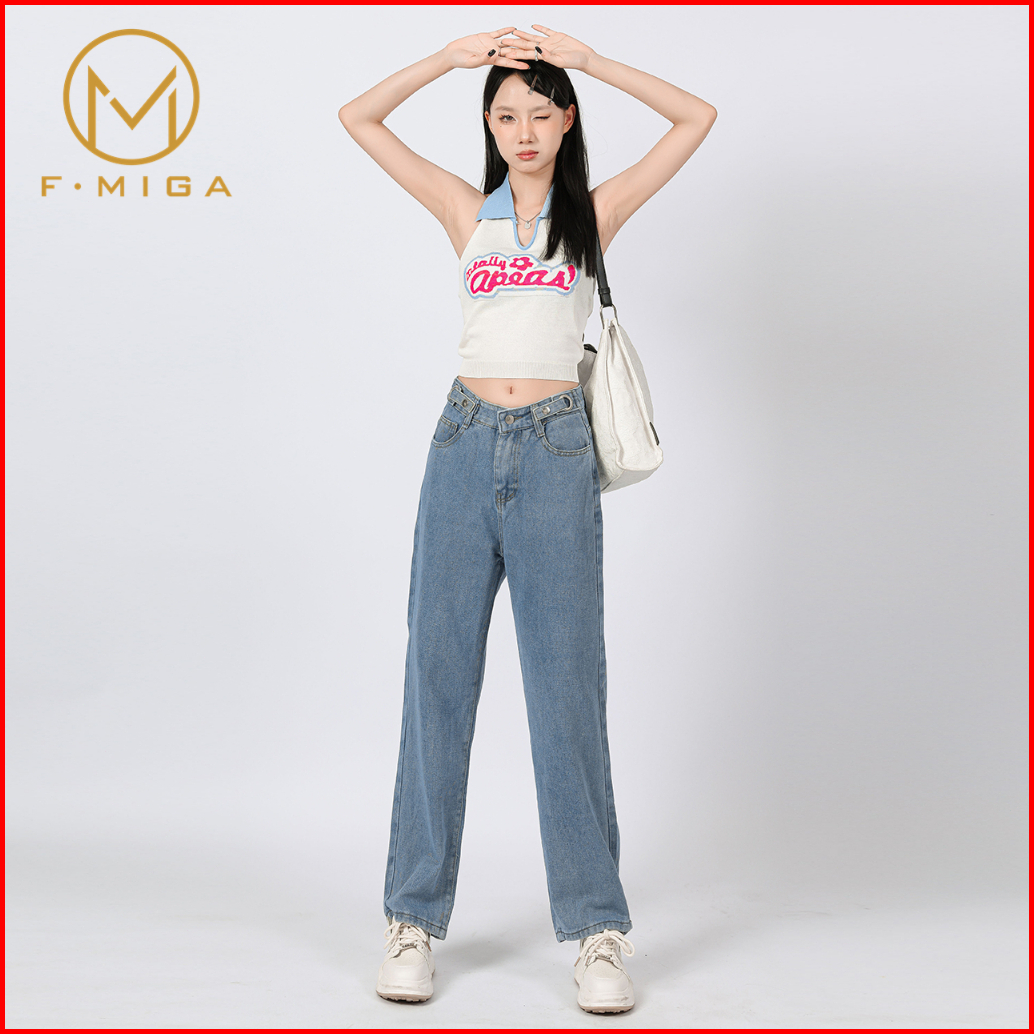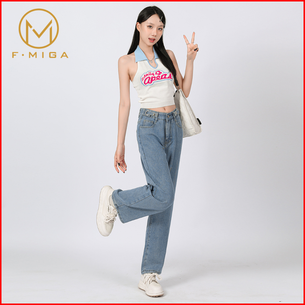 F Miga C6 Boyfriend Wanita Celana Bagy Jeans High Waist Korean