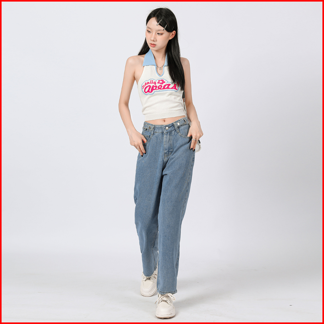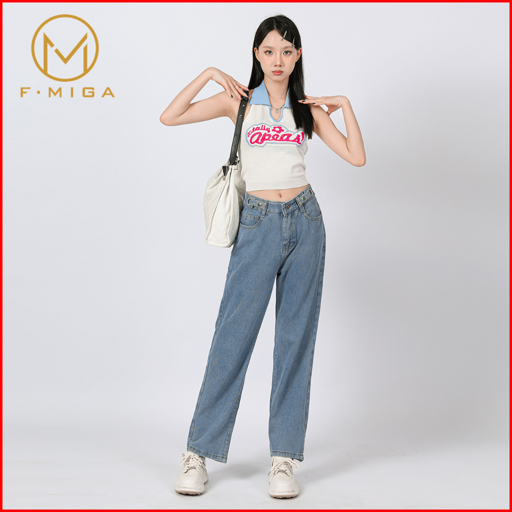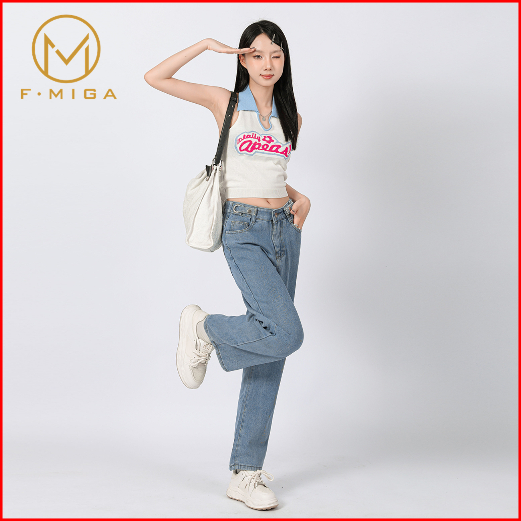 F Miga C6 Boyfriend Wanita Celana Bagy Jeans High Waist Korean