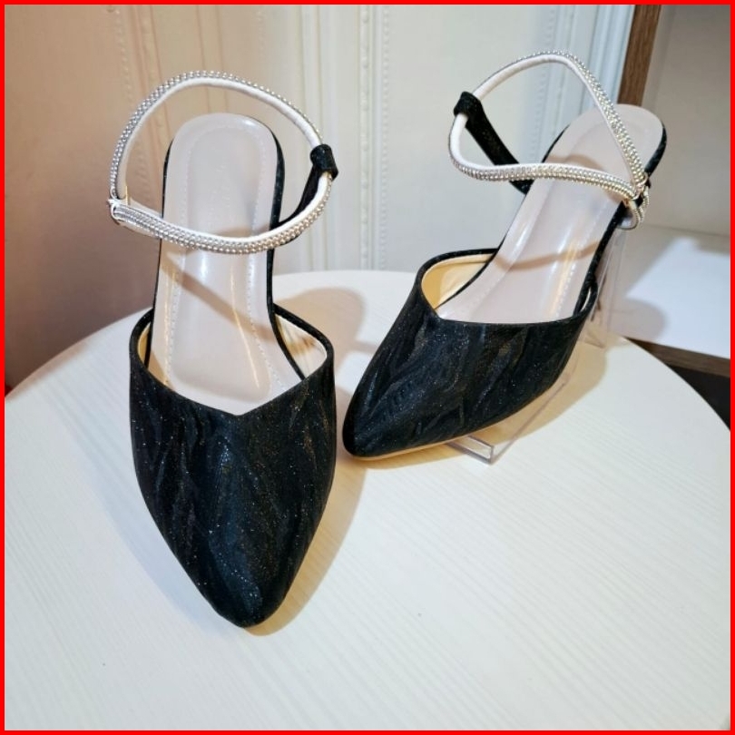Dcollection Bh 02 Sepatu Pesta Tali Permata Transparan Sandal Heels Wanita Hak Kaca 5 Cm