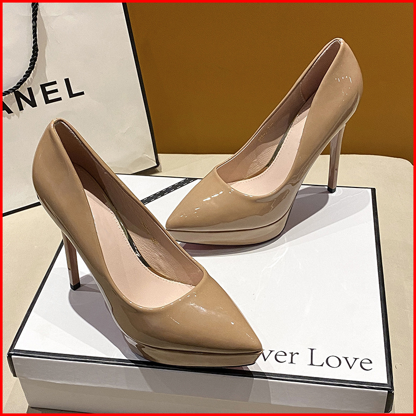 Sepatu 12cm High Stiletto Heels Hak Lancip Tinggi Kerja Kantor Wanita Kekinian Korea Terbaru Import Murah Premium Hitam