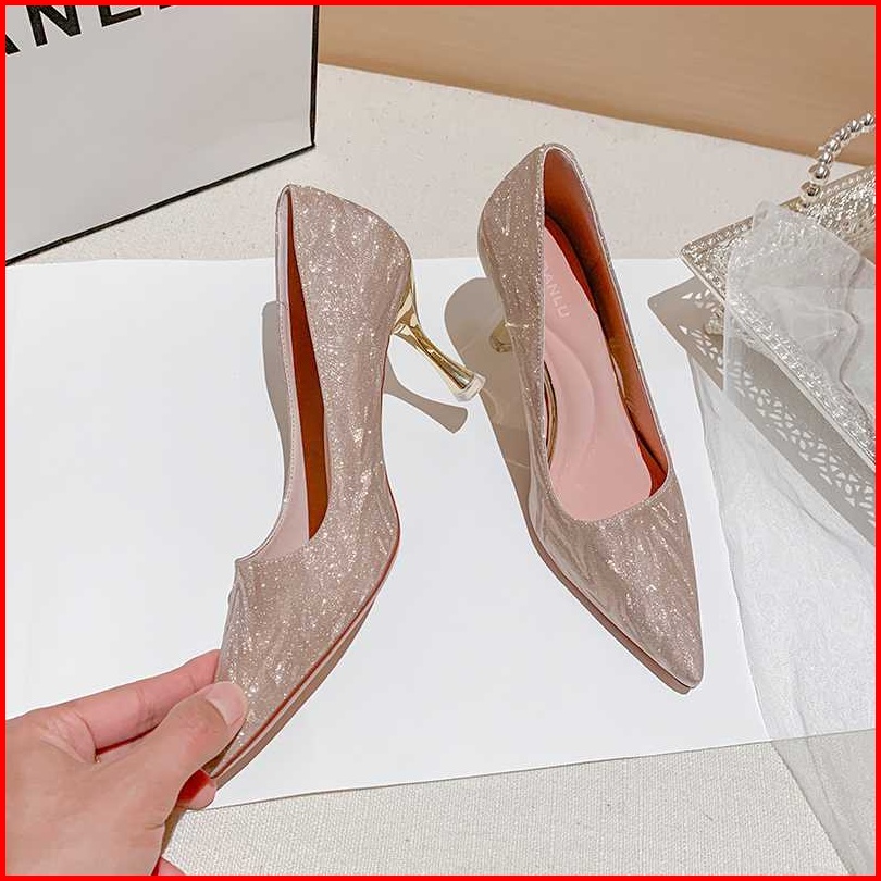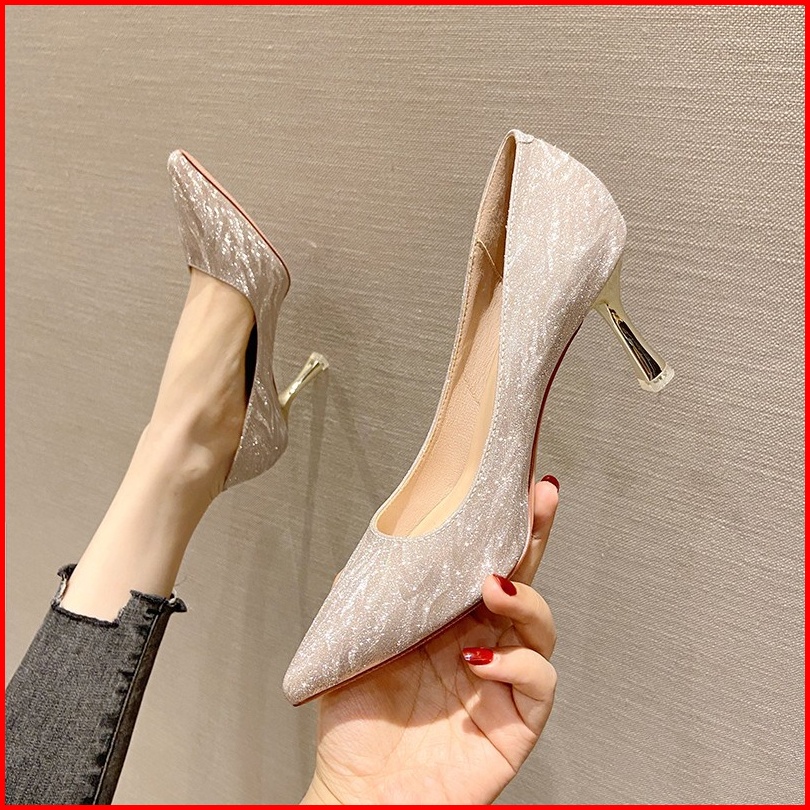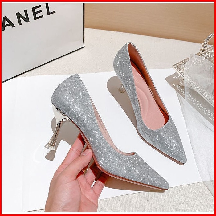 Sepatulady Sl912 2 Warna - Size 34-40 - Silver-heels Import-8cm-sepatu Wanita Glitter-wedding Heels