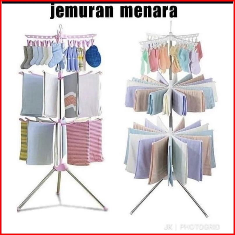 Jemuran Menara Lipat 3 Tingkat Jemuran Pakaian Portable Jemuran Bayi