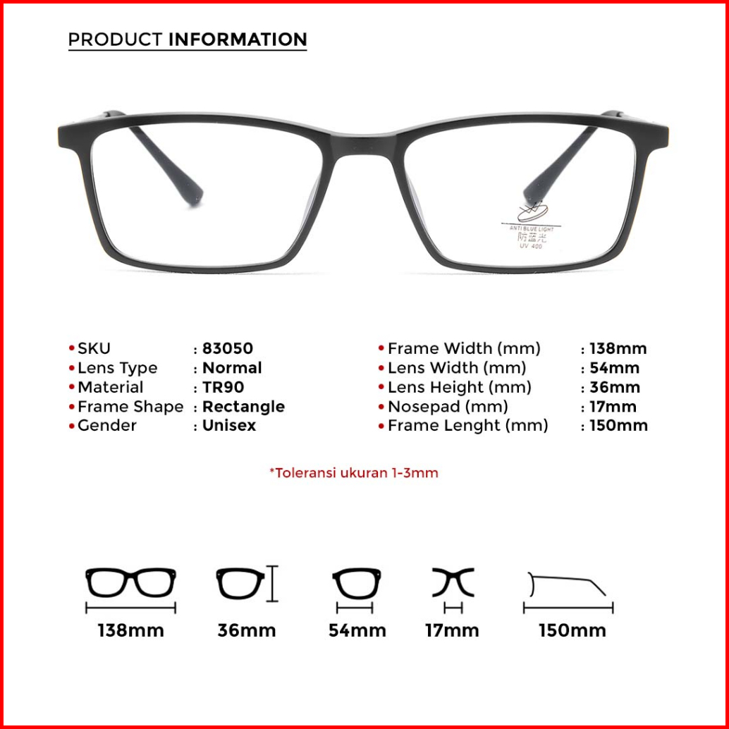 Berrybarton Kacamata Kotak Anti Radiasi Blueray Kacamata Tr90 Minus Bluecromic Pria Wanita 83050
