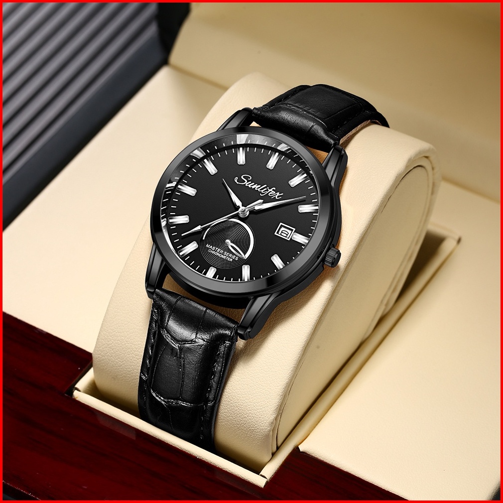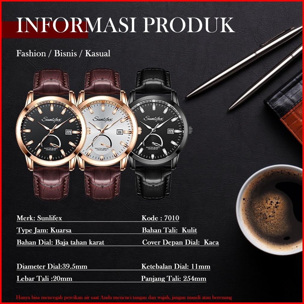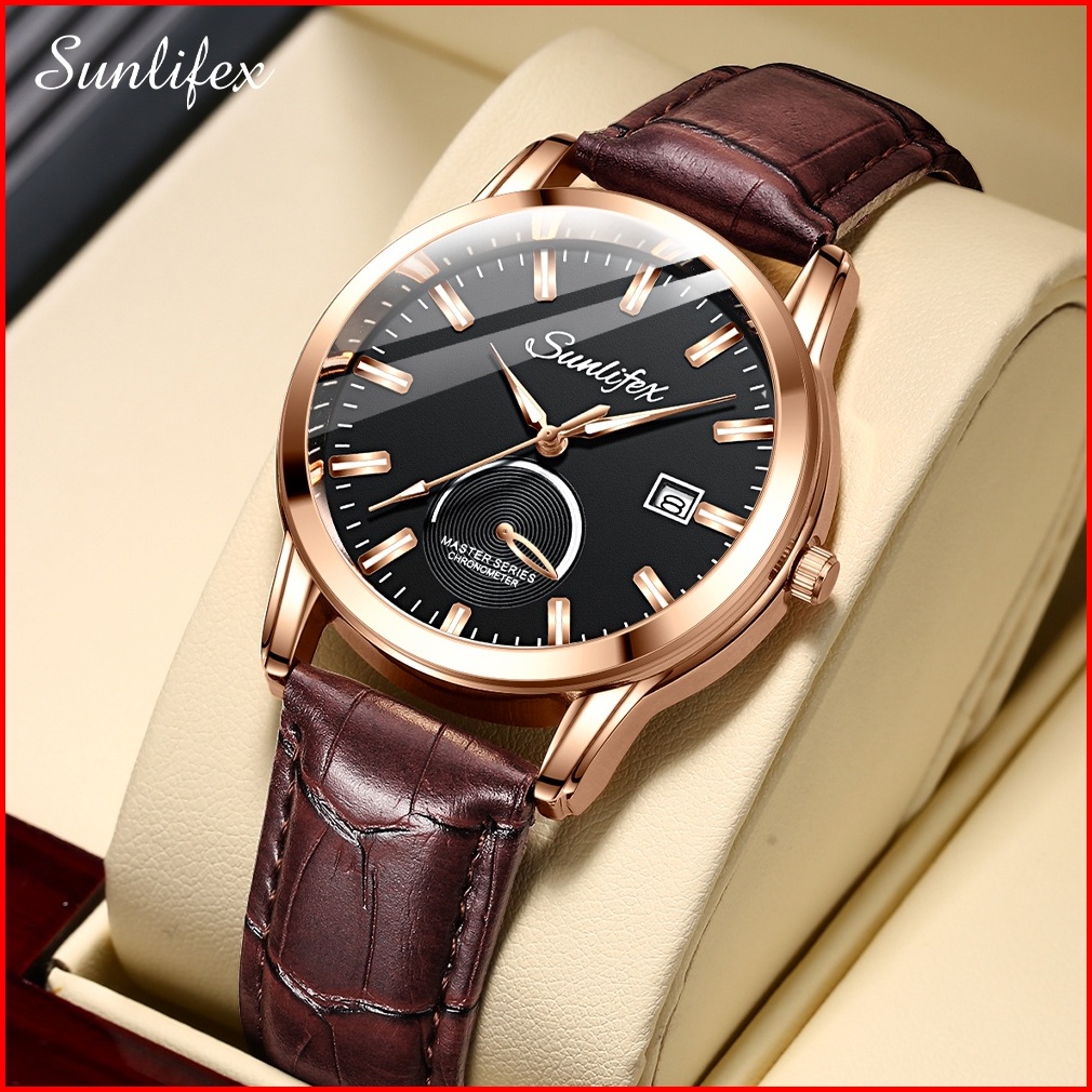 Sunlifex Jam Tangan Pria Original Kuarsa Klasik Santai Jam Pria Calendar Tali Kulit Jam Tangan Cowok 7010