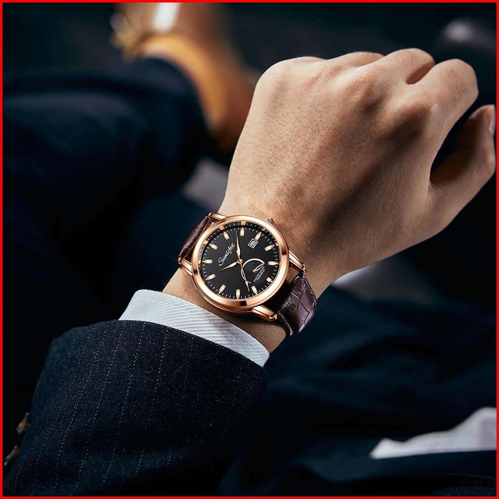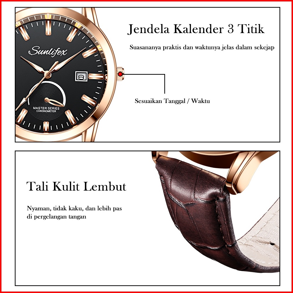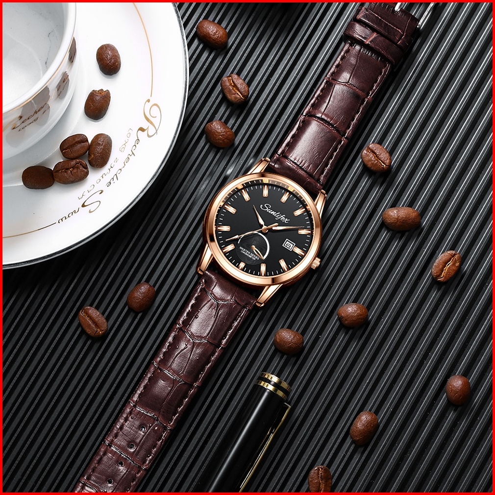 Sunlifex Jam Tangan Pria Original Kuarsa Klasik Santai Jam Pria Calendar Tali Kulit Jam Tangan Cowok 7010