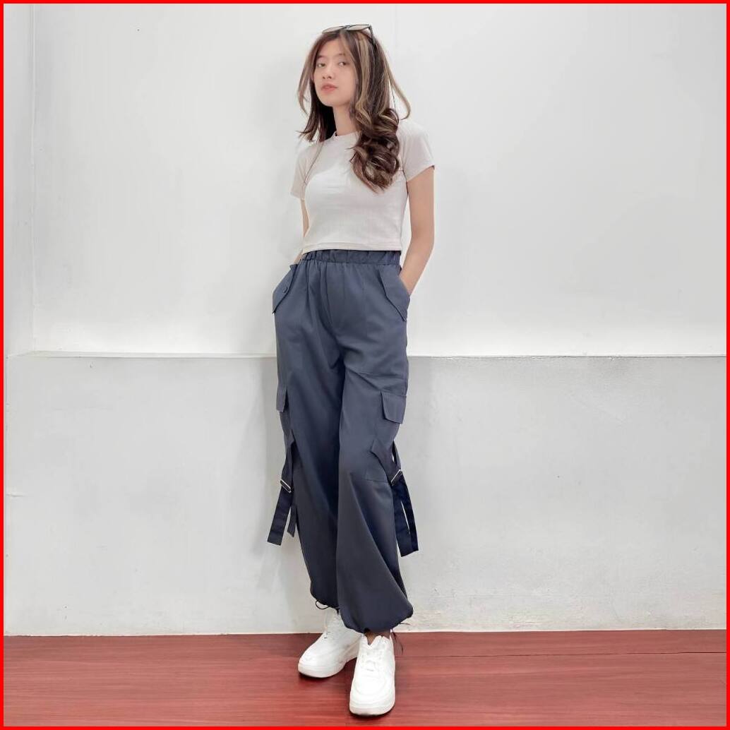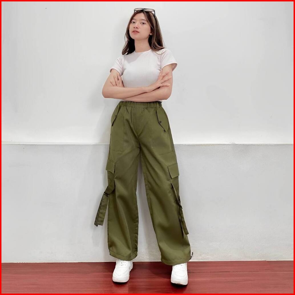 Louis Cargo Pants - Celana Cargo Wanita Highwaist Korean Style - Celana Streetwear Wanita - Kulot Wanita Highwaist Katun