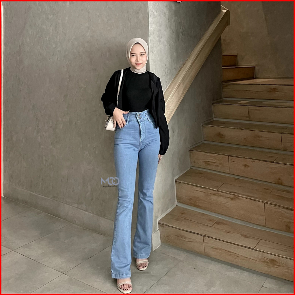 Mcojeans Ootd Sz 27-34 Livy Highwaist Cutbray Kancing 2 Celana Panjang Wanita
