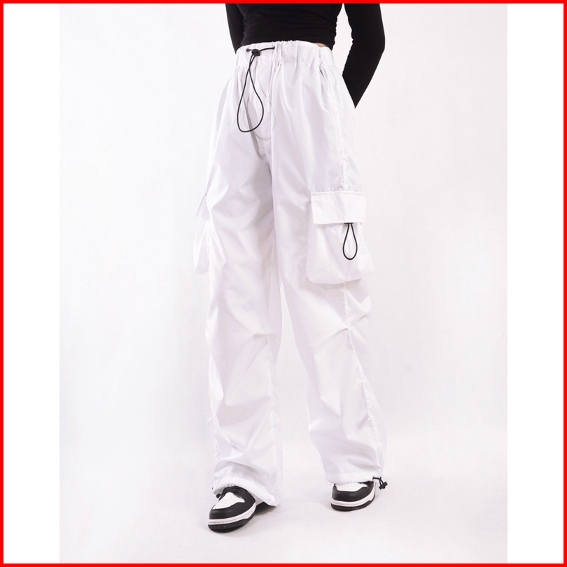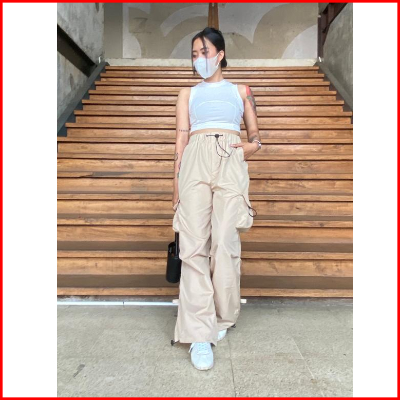 Aigo Zeil Cargo Pants - Celana Cargo Parasut Panjang Cream Streetwear Unisex