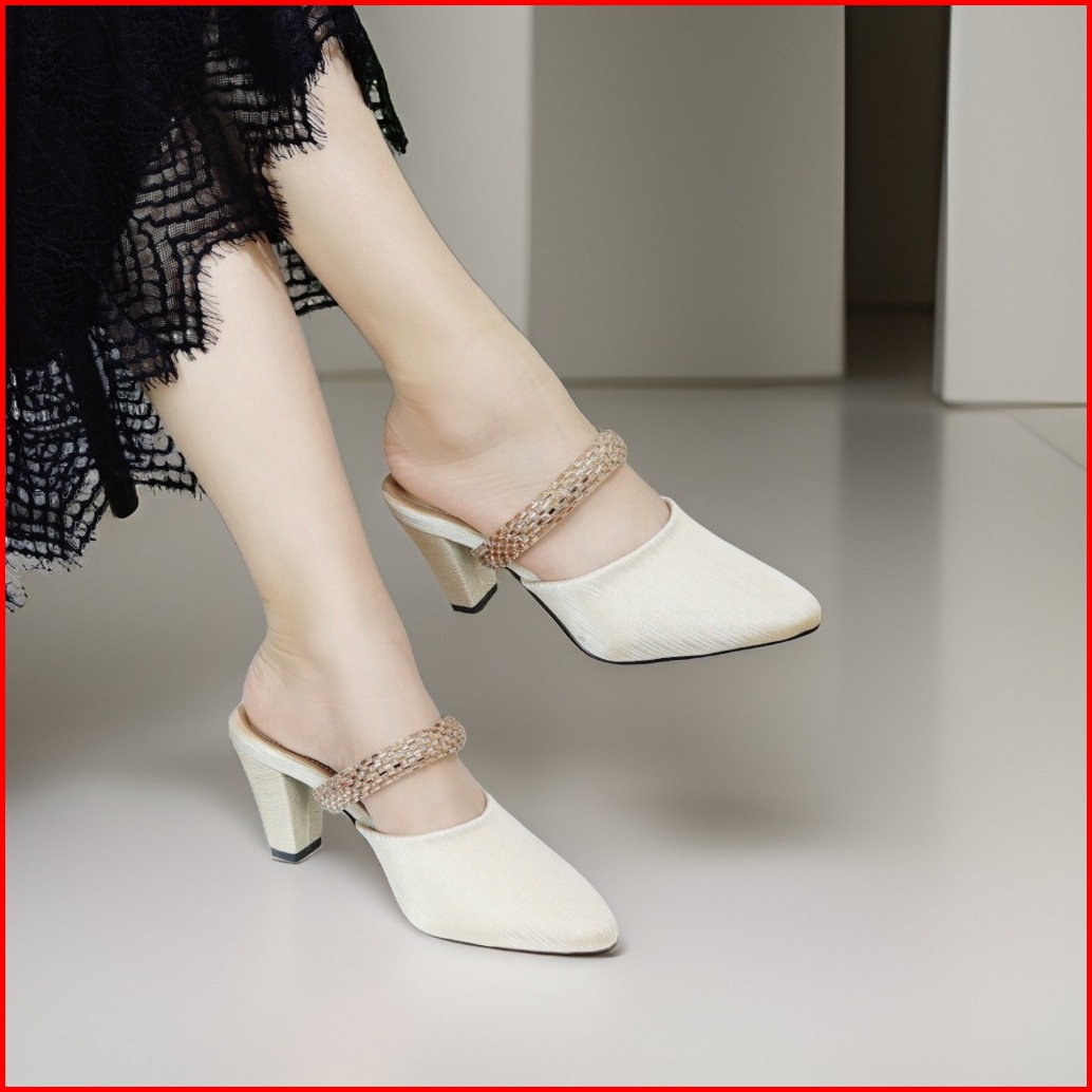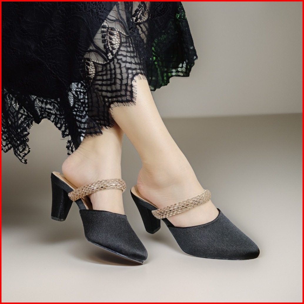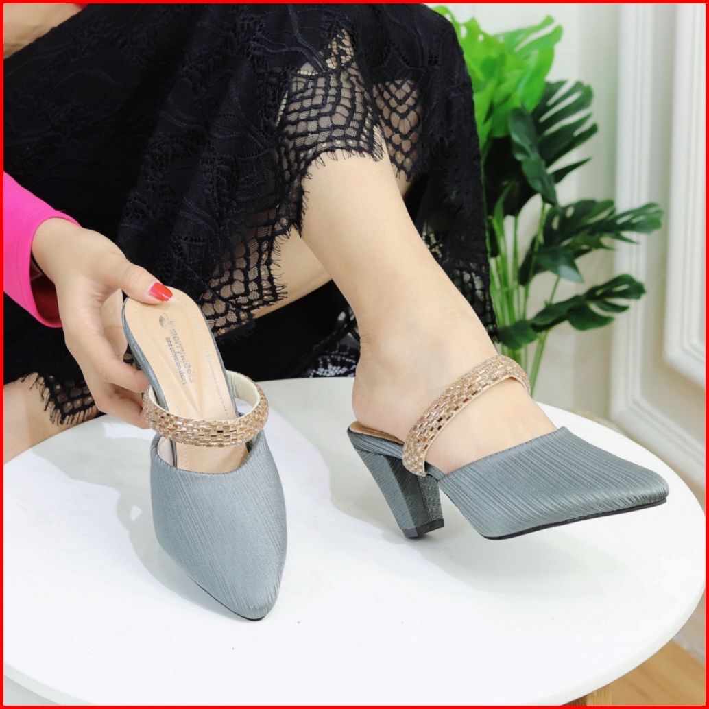 Herdian Hd 01 Sendal Wanita Hak Runcing Mules Heels Hak Tinggi 7 Cm
