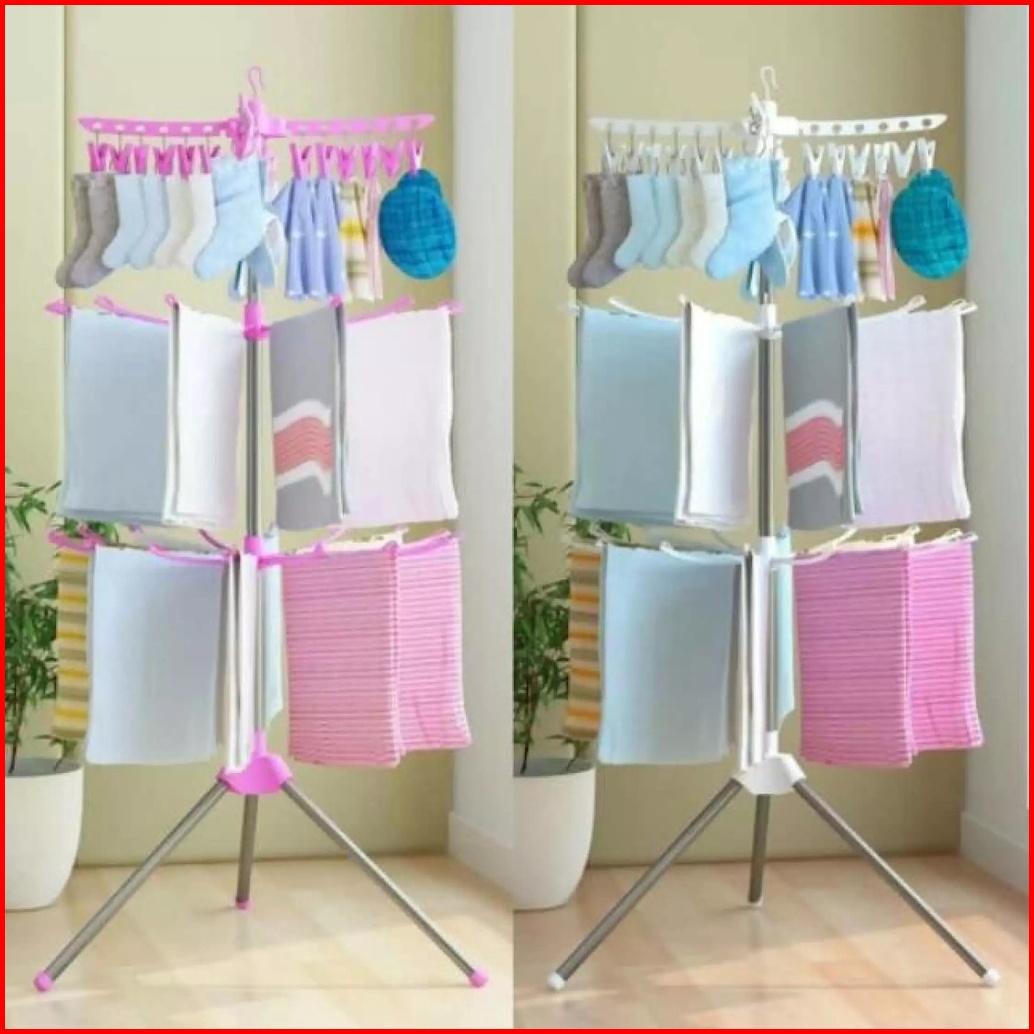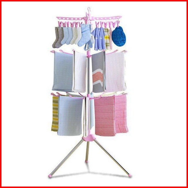 Turun Harga Produk Baru Foldable Clothes Drying Airer Rak Jemuran Lipat Jemuran Model Menara Warna Putih Termurah
