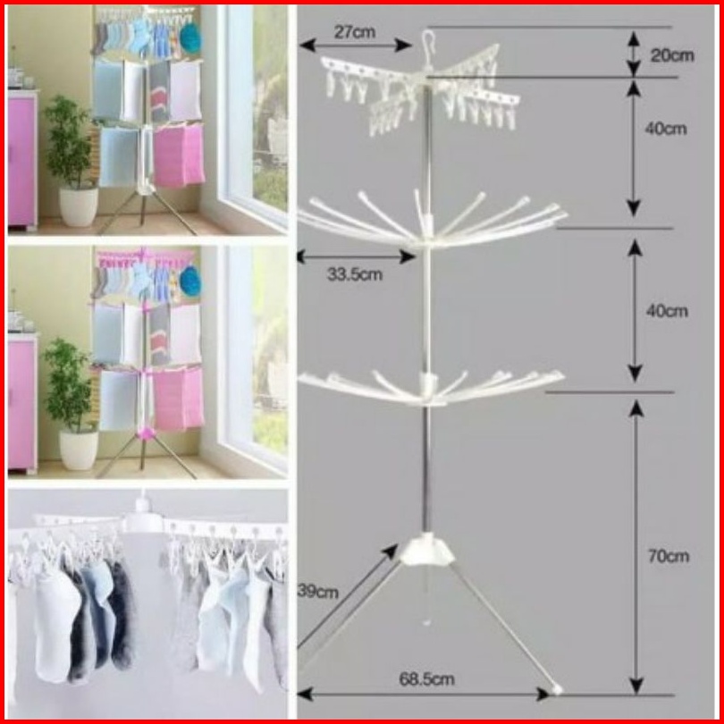 Jemuran Menara Jemuran Baju Bayi 3 Tingkat 10 Stik