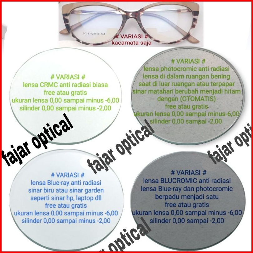 Frame aja, Lensa CRMC, Lensa blue-ray, Lensa photocromic, Lensa Blucromic