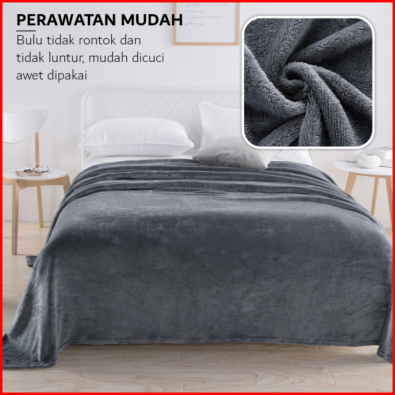 Selimut Bulu Polos Jumbo Dewasa Tebal Halus Lembut Ukuran Super King 200x230cm Bahan Polyester Premium High Quality Perl