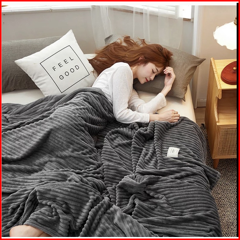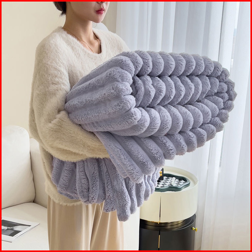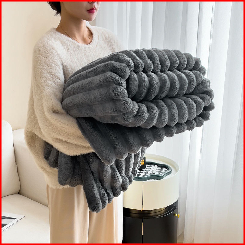Selimut Bulu Halus Dewasa Polos Salur Aesthetic Ukuran Super King 180x200 New Premium Quality