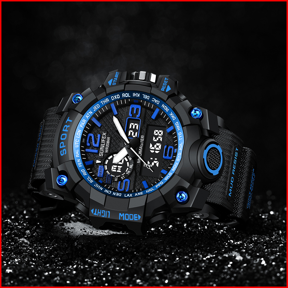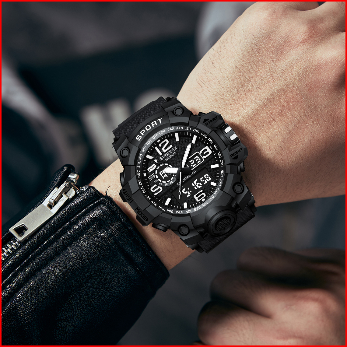 Sunlifex Jam Tangan Pria Digital Olahraga Kasual Tali Silikon Jam Tangan Cowok