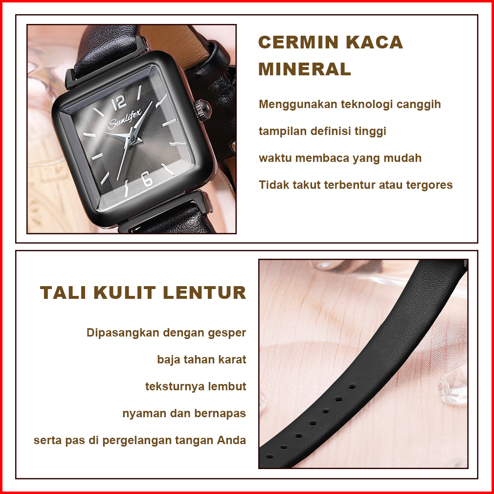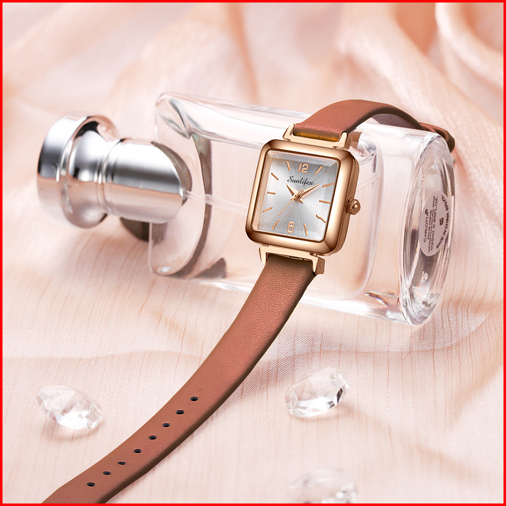 Sunlifex Jam Tangan Wanita Kecil 8004 Original Korea Style Menampilkan Kuarsa Mode Anggun Jam Tali Kulit Jam Tangan Cewe