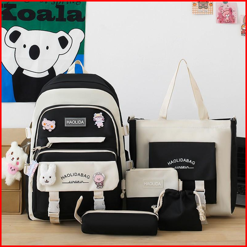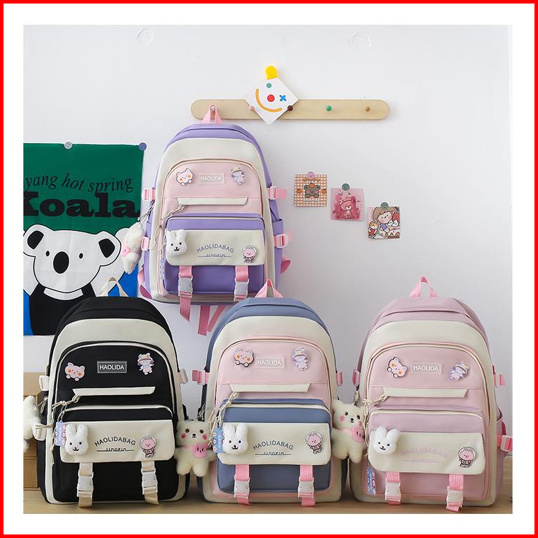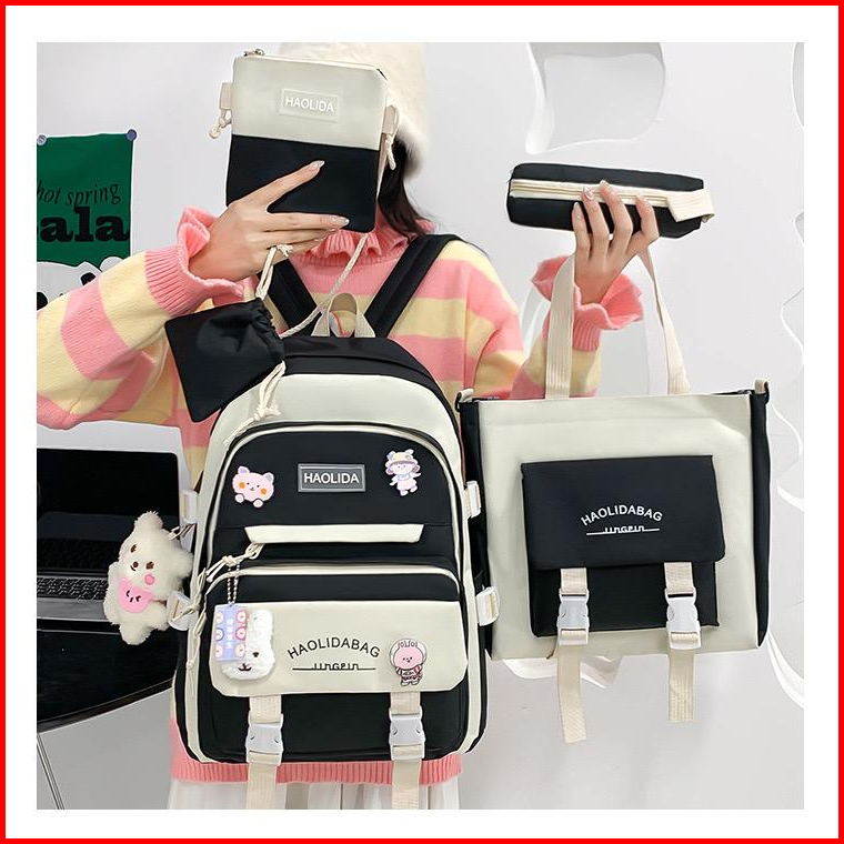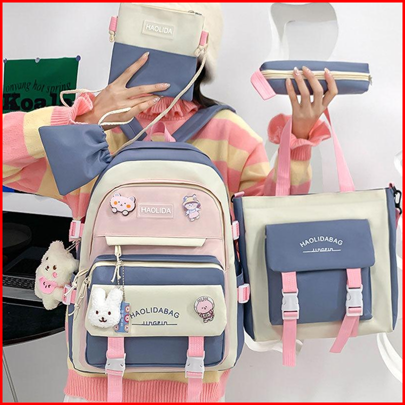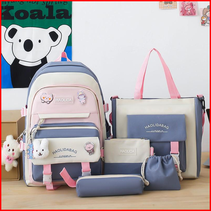 Tas Ransel Wanita 5in1 Korea Style Tas Sekolah Wanita Import Tas Ransel Anak
