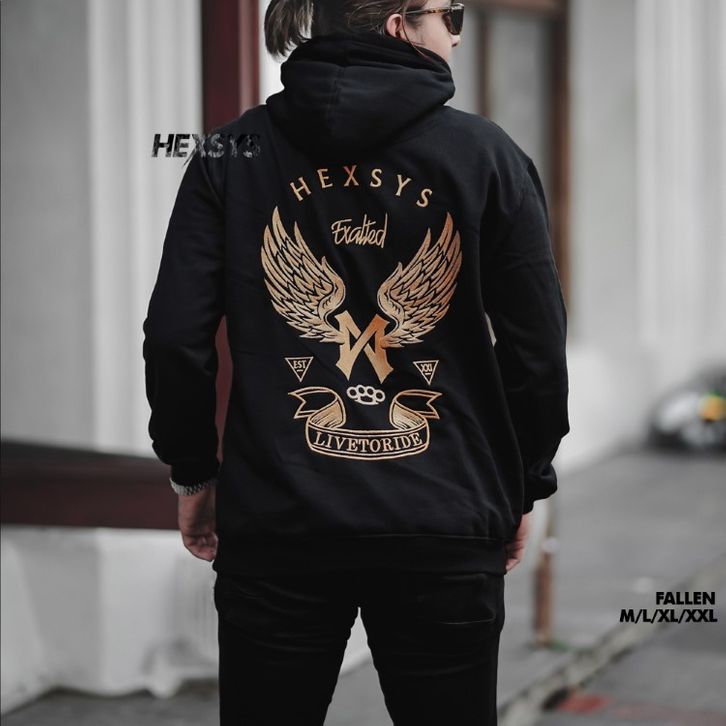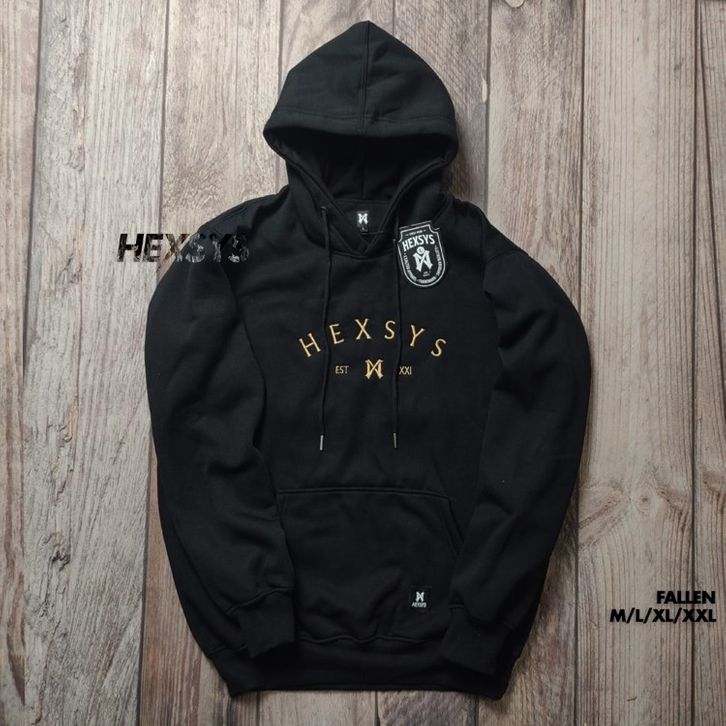 Hexsys Fallen Hoodie Pria Original M Xxl | Hodie Bordir Ori Hoodie Tenun Kualitas Cotton Flece Hitam Pekat Bahan tebal