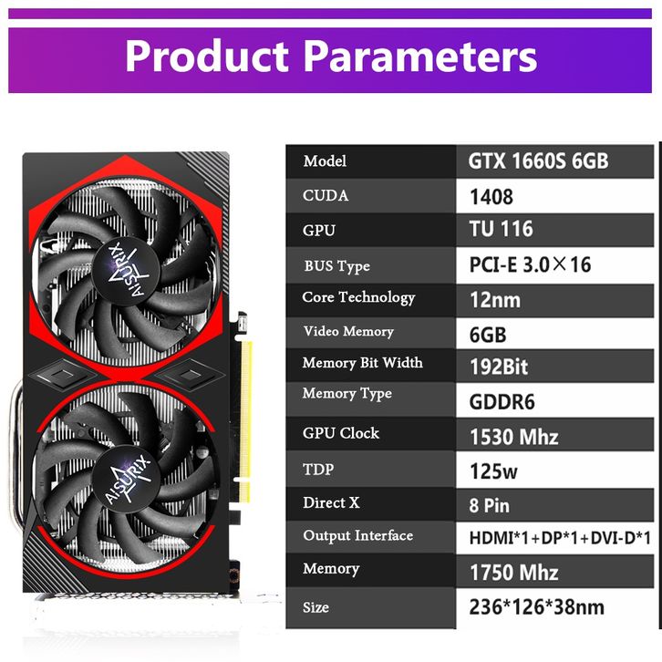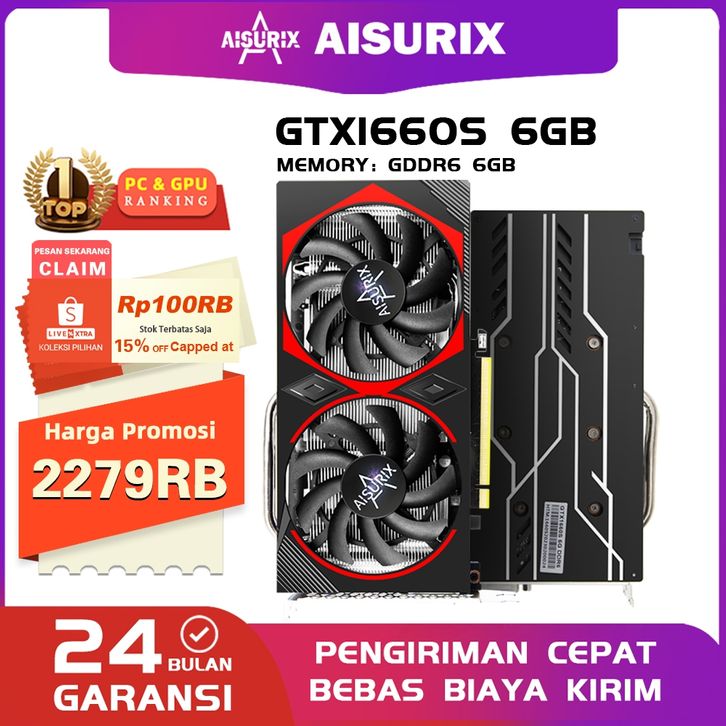 AISURIX NVIDA GTX 1660 Super 6GB VGA Card GDDR6 192BIT - New Video Card For PC Gaming 1660S
