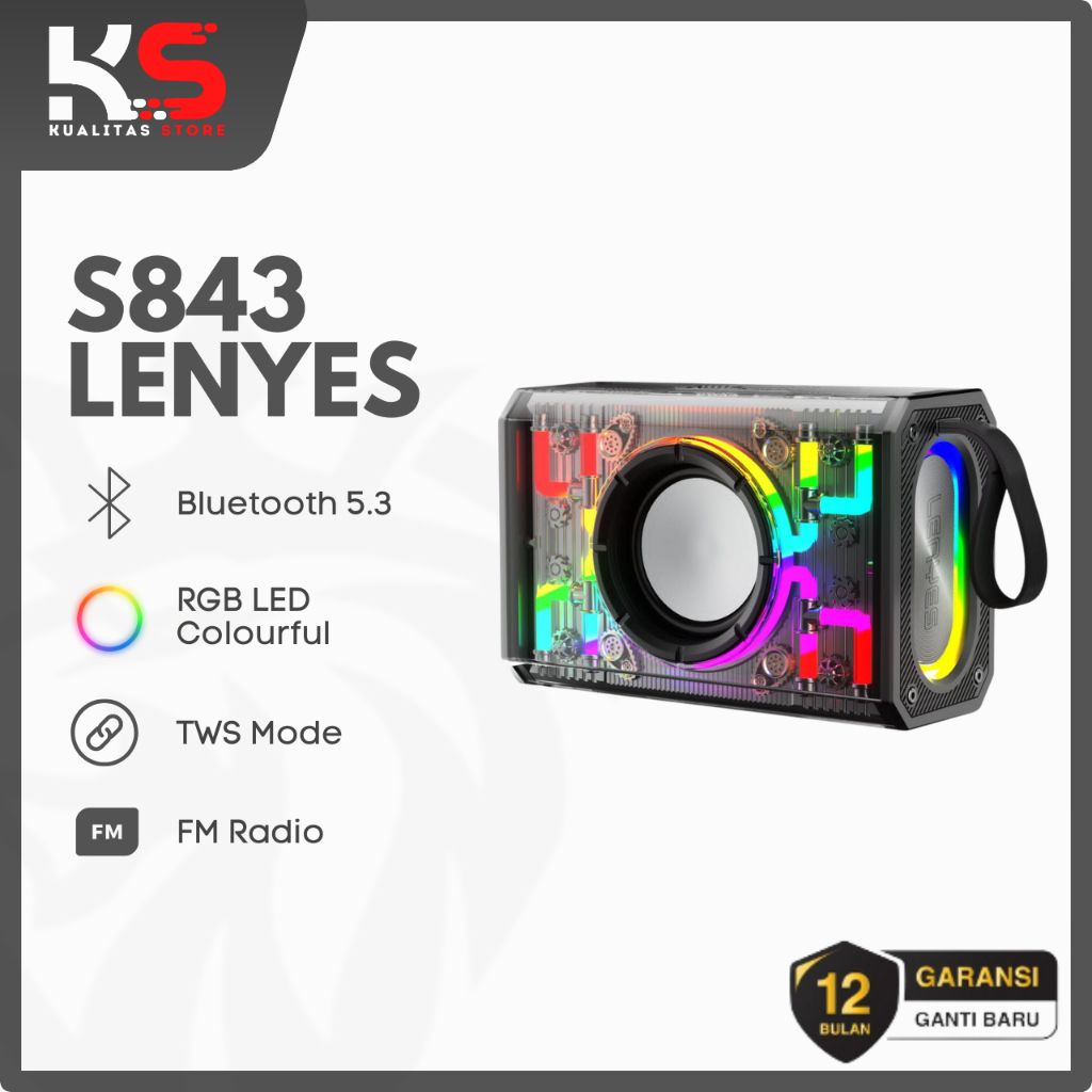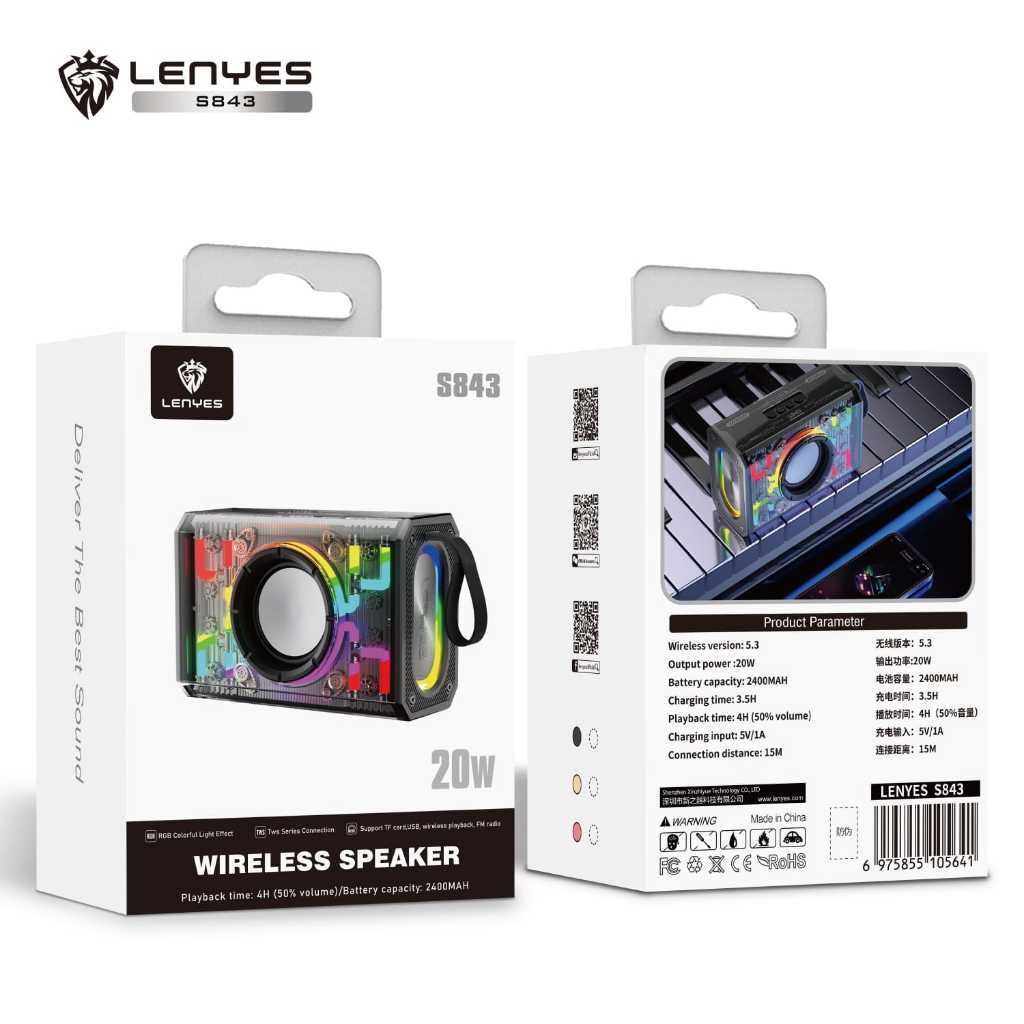LENYES S843 20W Speaker Bluetooth 5.3 Transparan RGB LED Light TWS Wireless Portable FM Radio