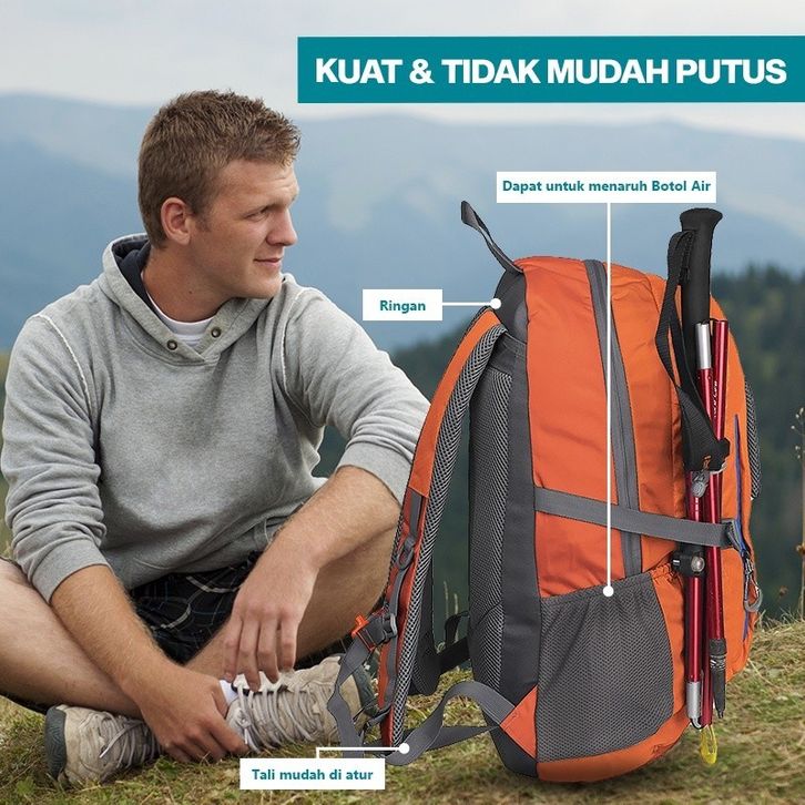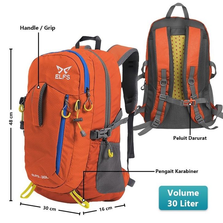 Tas Gunung Carrier Ransel 30L Tenteng Water Resistant Hiking Bag 3D Mesh Tenteng FREE RAINCOVER