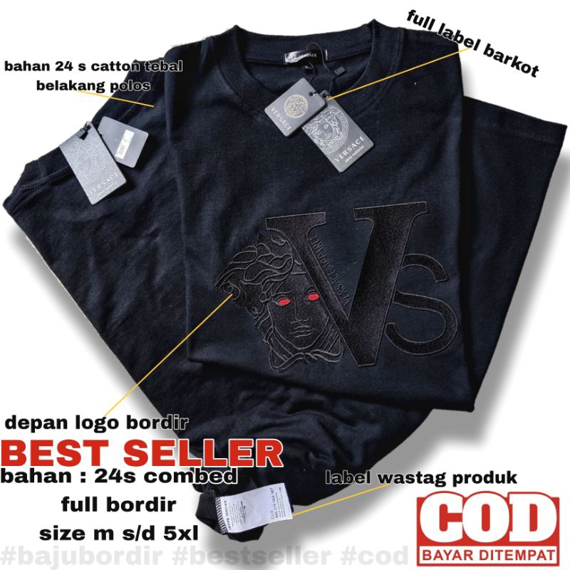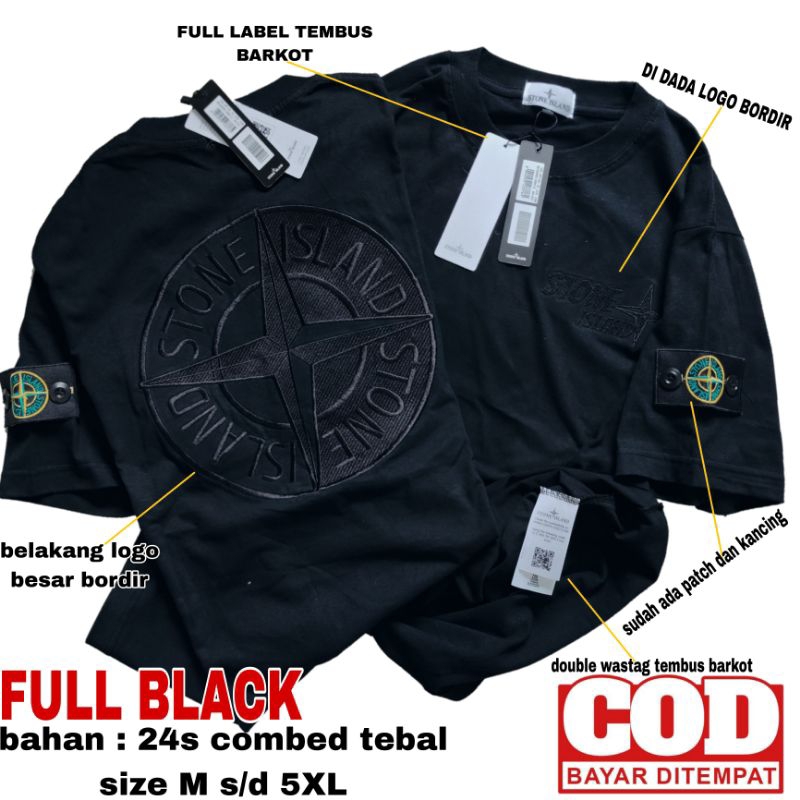 KAOS BORDIR FULL BLACK GARANG ELEGAN /BAJU BORSIR FULL BLACK TEBAL 24S CATTON UNISEX/BEST SELLER