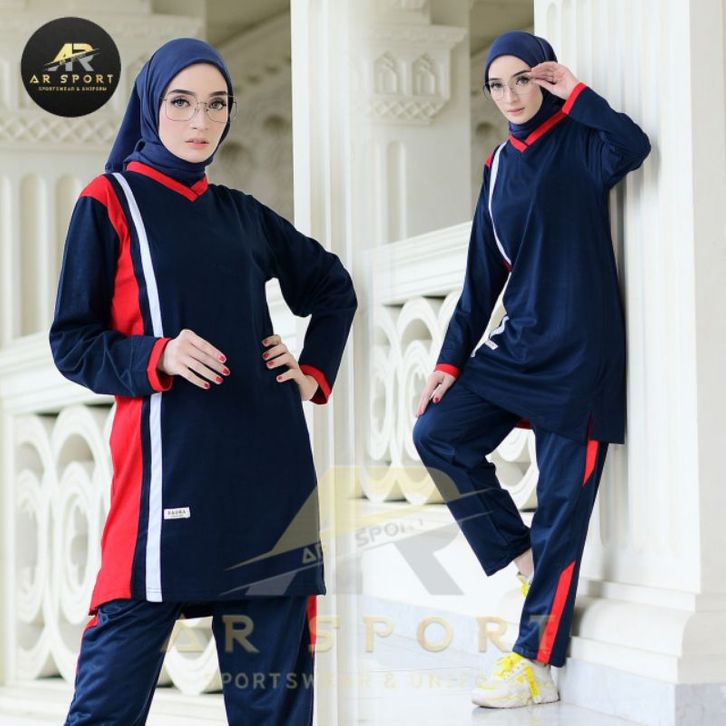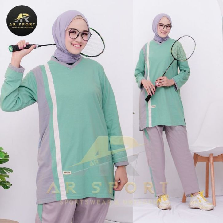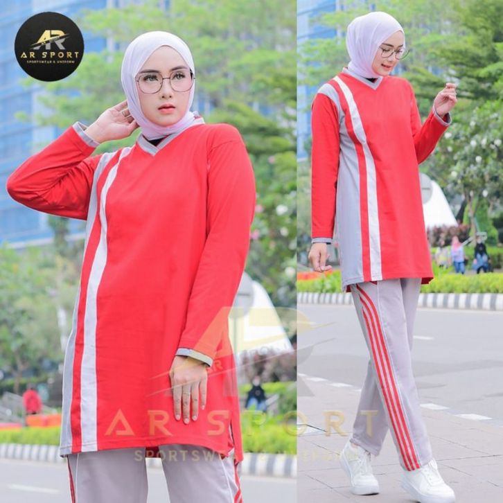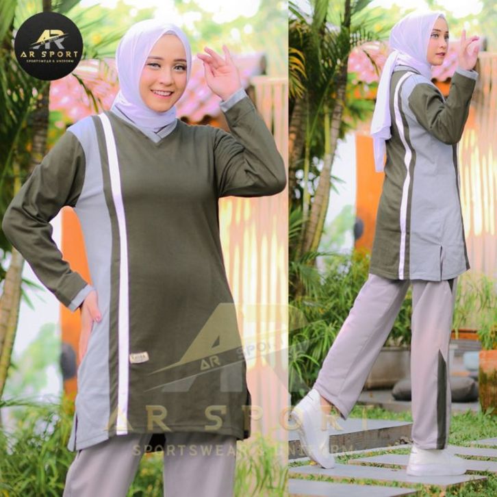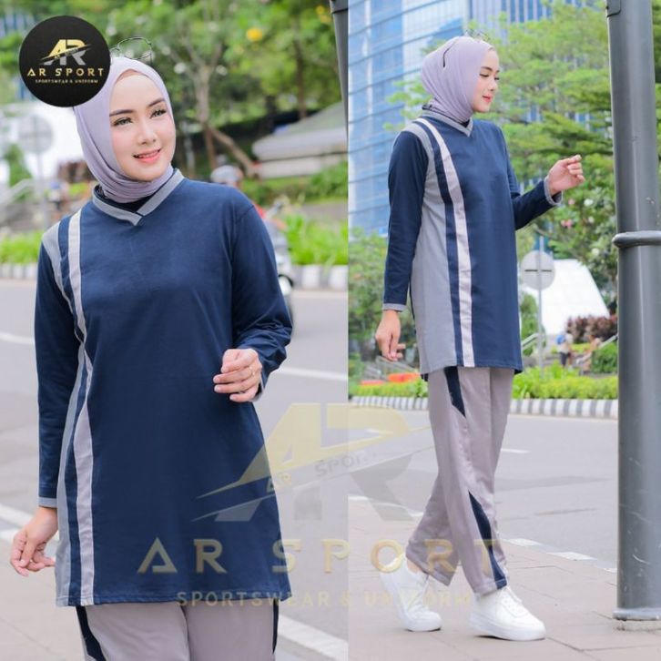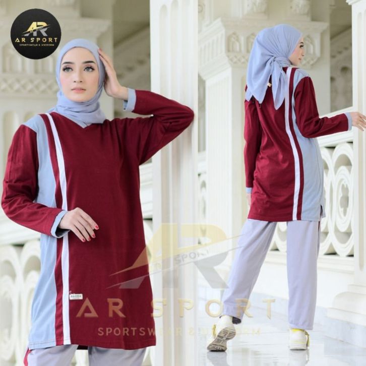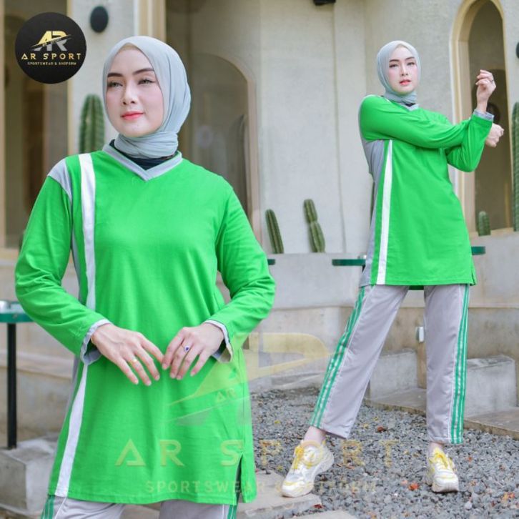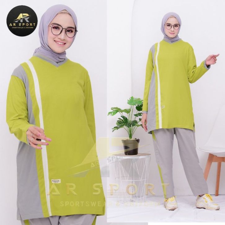 Setelan Olahraga Tunik Wanita Muslimah One Set Sporty Cewek Muslim Bahan Adem Halus Lembut Menyerap Keringat Stylish