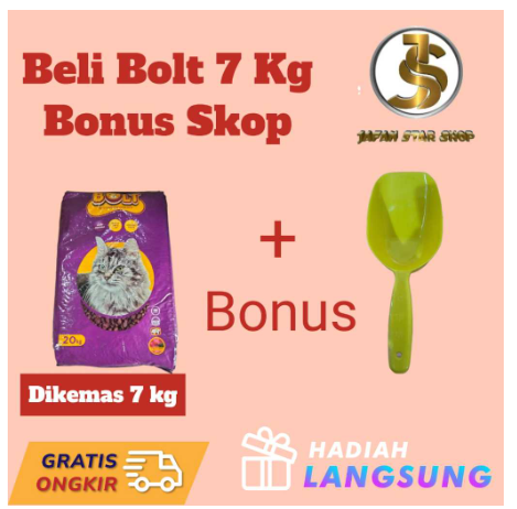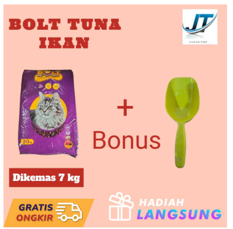 Makanan Kucing BOLT 7 kg Rasa Tuna dan Salmon + Skop Pakan