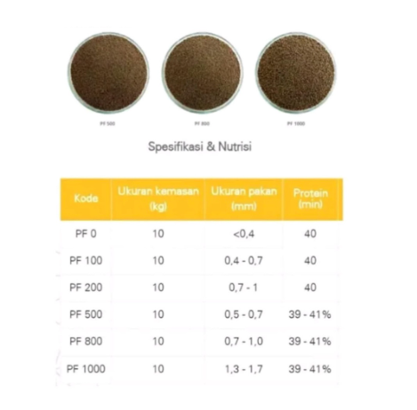 Pelet Ikan Pakan Benih PF 100 PF 500 PF 800 PF 1.000 dikemas 1 Kg