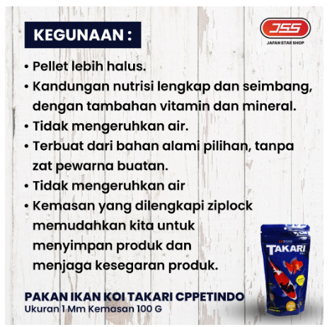 Makanan Ikan Hias TAKARI 1mm Mas Koi, Louhan, Cupang, Manfish dll (100gr)