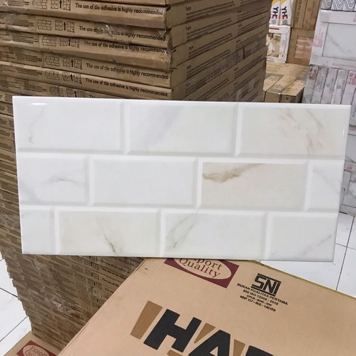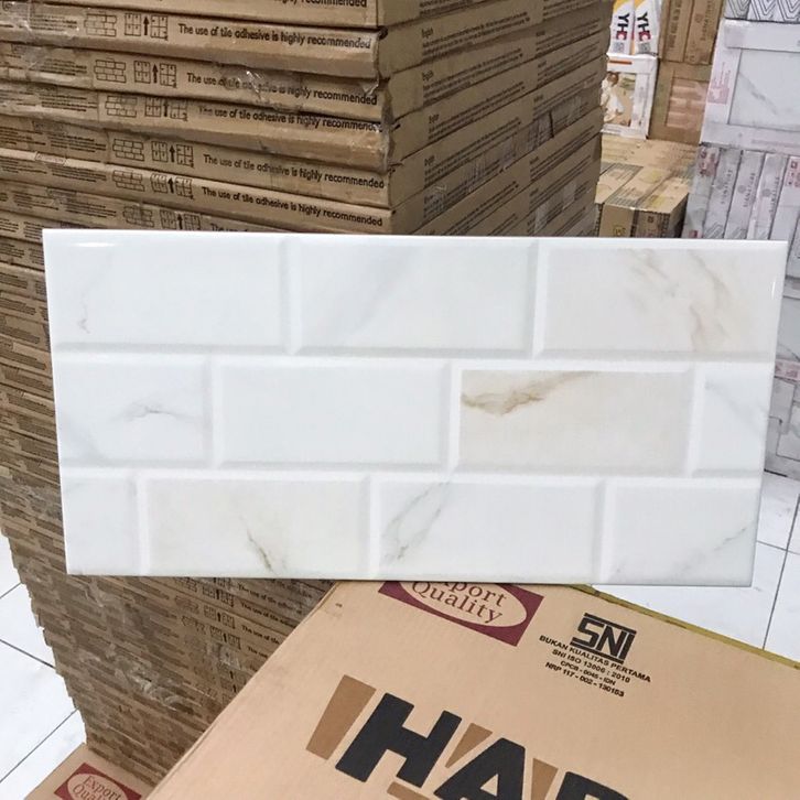 keramik dinding 30x60 bata motif marmer (glossy)/ keramik dinding dapur/ keramik bevel/ keramik bata putih/ keramik