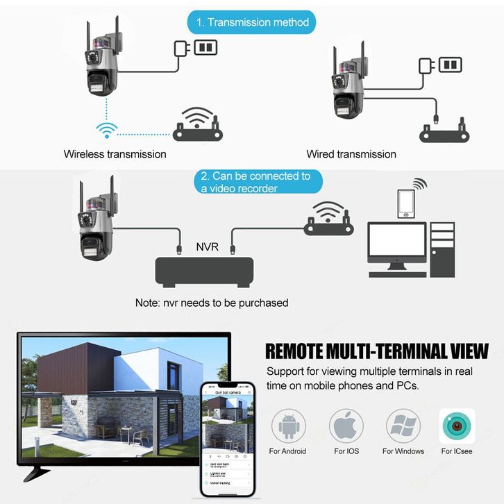 8MP 4K PTZ IP Kamera WiFi Dual Lens Dual Screen Waterproof Auto Tracking CCTV Security Camera Video Surveillance iCsee A