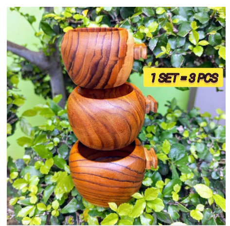 CEPUK PAKAN BURUNG KAYU JATI ISI 3 PCS / CEPUK PAKAN BURUNG / CEPUK PAKAN MINUM KAYU JATI / TEMPAT PAKAN BURUNG KAYU JAT