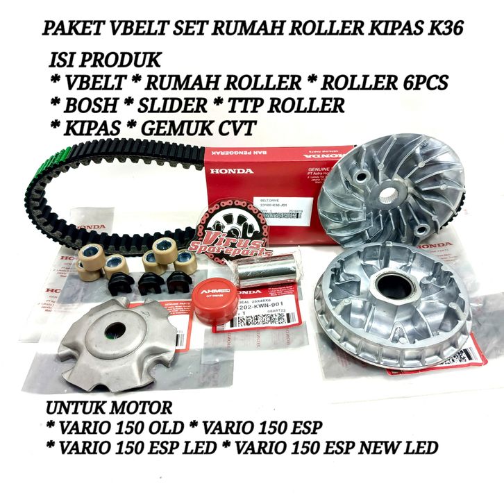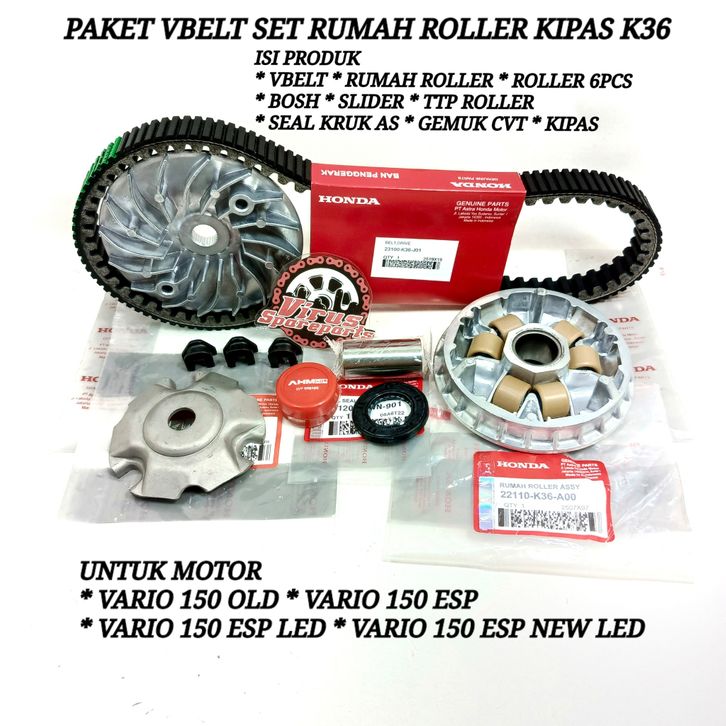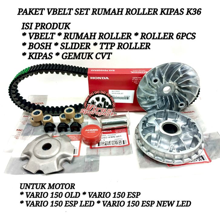 ORIGINAL!!!PAKET RUMAH ROLLER SET VBELT KIPAS VARIO 150 OLD VARIO 150 ESP LED VARIO 150 ESP NEW LED K36