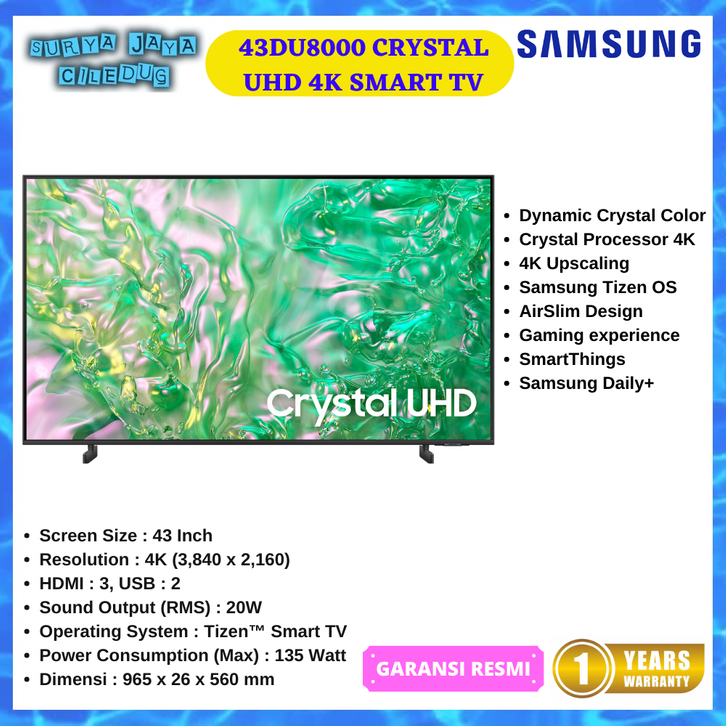 LED SAMSUNG UA43DU8000, 43DU8000 SMART TV 43 INCH CRYSTAL UHD 4K