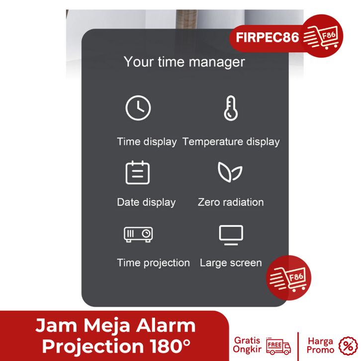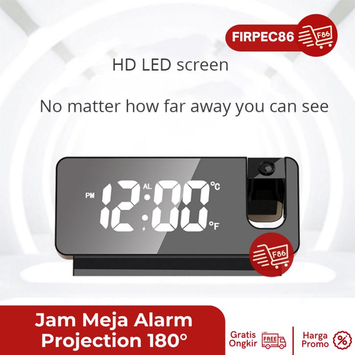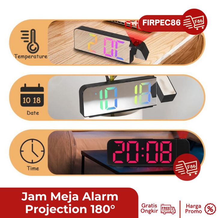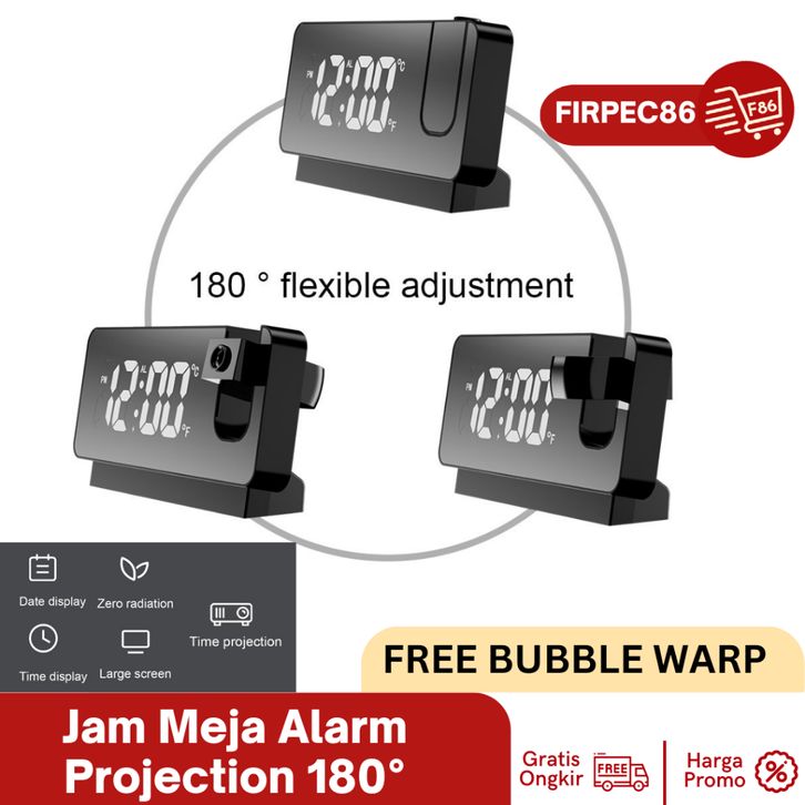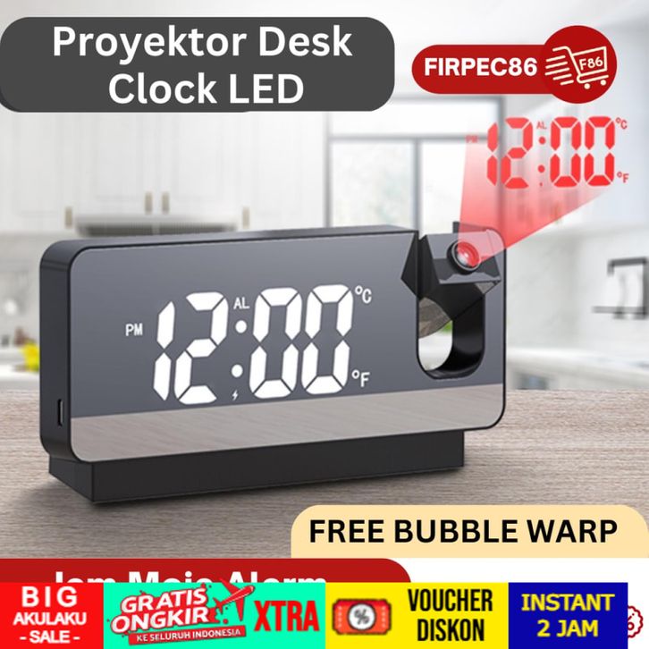 jam Meja Unik Proyektor Desk Clock LED Digital Alarm Projection 180° CICILAN TANPA DP