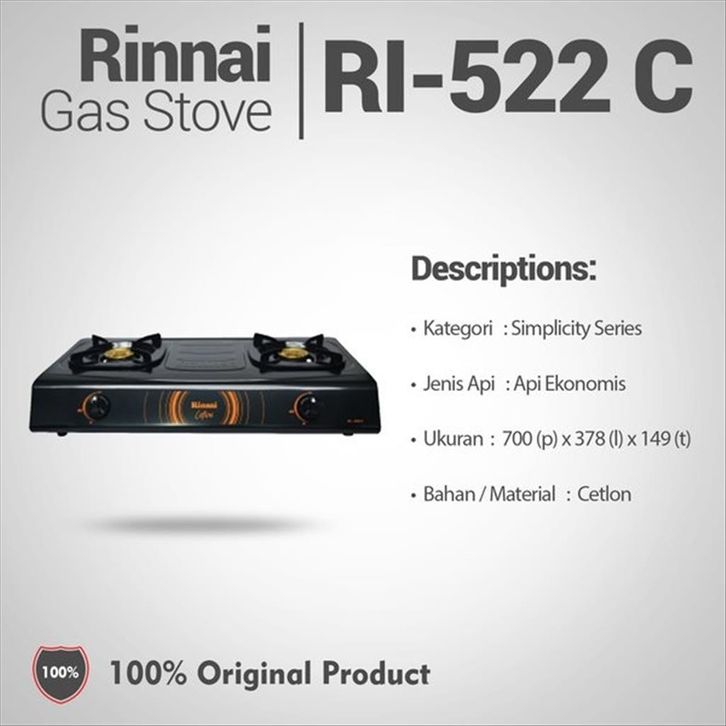 GRATIS KOMPOR - GAS RINNAI RI522C / RI-522C / RI 522 C 2 TUNGKU 100 ORI