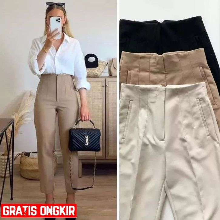 Aerum Highwaist Scuba Pants Saku Paspol Celana Zipper Scuba Pants