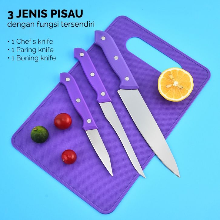 Pisau Dapur Set Lengkap Telenan Stainless Steel 5in1 Peralatan Dapur Kitchen Chef Knife Rumah Tangga Import - J2