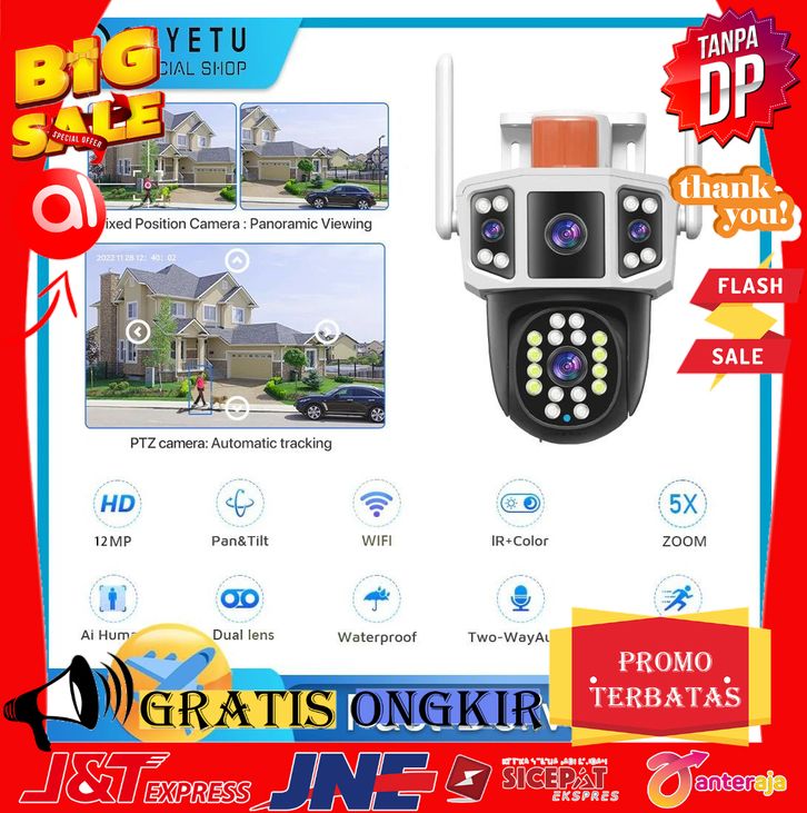 SEYETU Smart CCTV IP 3 Kamera Outdoor Wifi 12MP Waterproof 360 Derajat 5X Zoom Optik Support Yoosee APP +Micro SD Garans