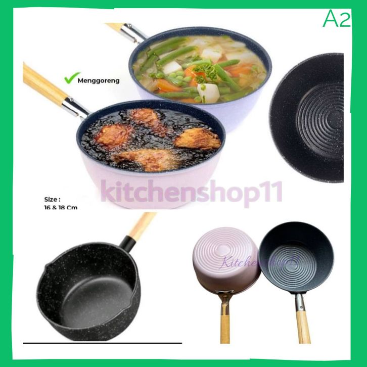 panci susu marble anti lengket 20cm panci masak mie milk pot bintik hitam tebal gagang kayu 18cm dan 20cm TERLARIS