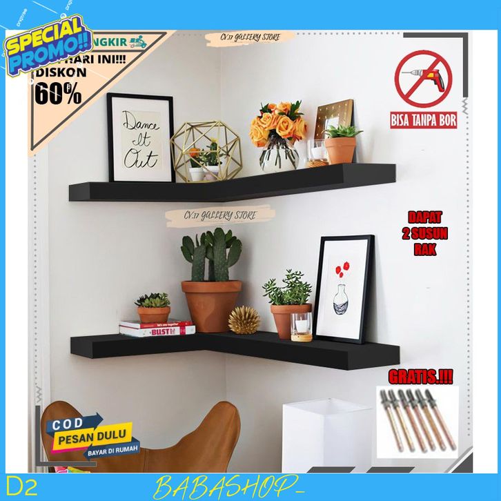 Floating Shelves Rak Dinding Sudut Siku Minimalis Model Tempel Melayang Gantung 2 Susun 40 32 cm Best Seller!
