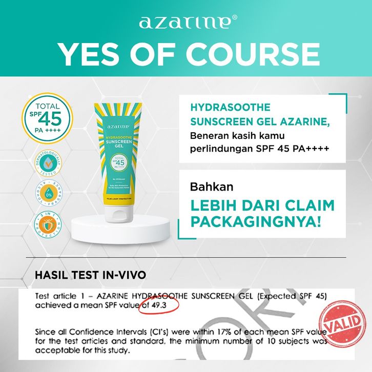 [Star] Azarine Sunscreen Gel SPF45 PA++++ 50ml [LOLOS UJI INVIVO INVITRO] BEST SELLER sunscreen kulit berminyak