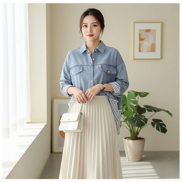 Kemeja Jeans Denim Atasan Wanita Salur Fashion Blouse Muslim Wanita Kemeja Wanita Kemeja Terbaru Fashion Hijab Muslim