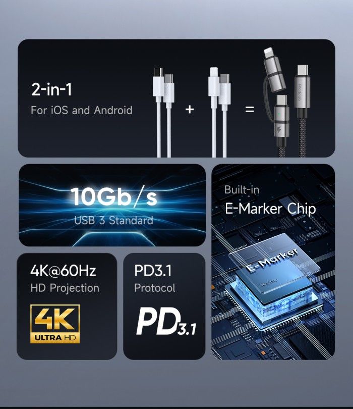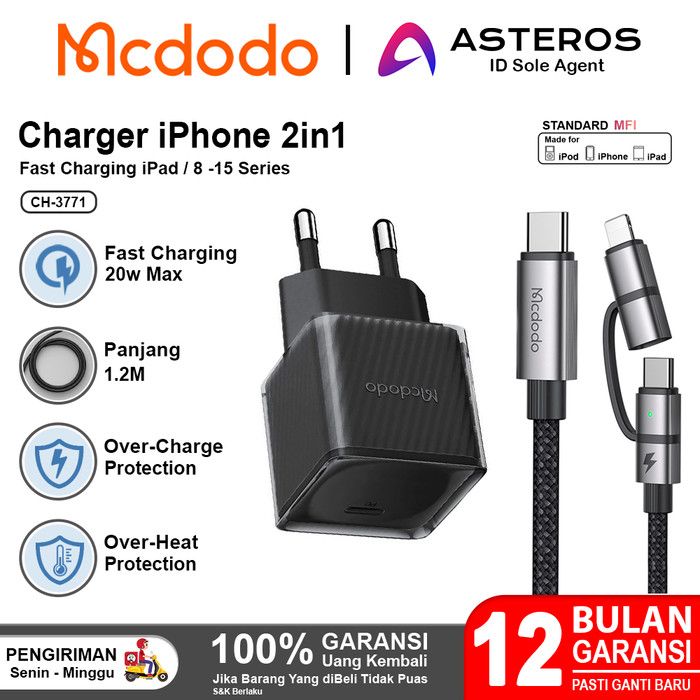 MCDODO Cherger 2in1 Fast Charging iPhone 12 13 14 15 USB C + Lightning