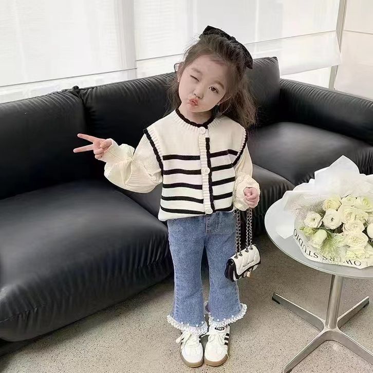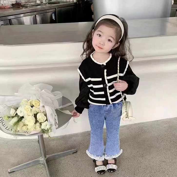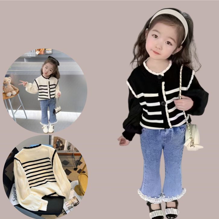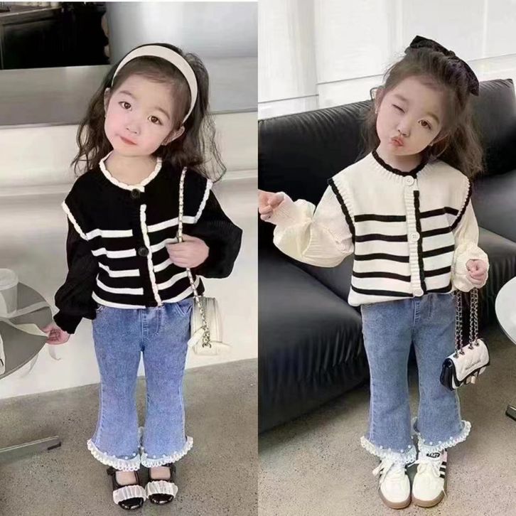 Setelan Baju Rajut Anak Perempuan 1-4 Thn/Set Knit Dan Celana Jeans 2in1 Bahan Katun Lembut Koreal Setelan anak perempua