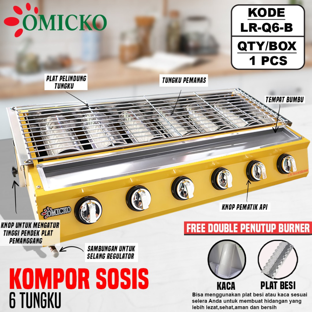 Panggangan Sosis Bakar Kompor Sosis Sate 3 Tungku Omicko + Paket Selang Regulator