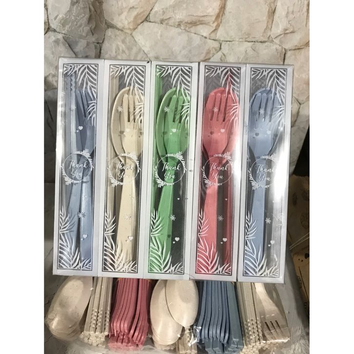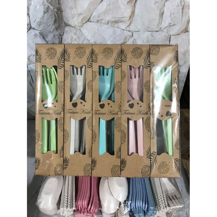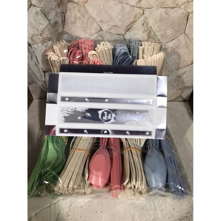 (isi 100) Souvenir Travel Set LOKAL Kemasan BOX Motif Sendok Garpu Sumpit
